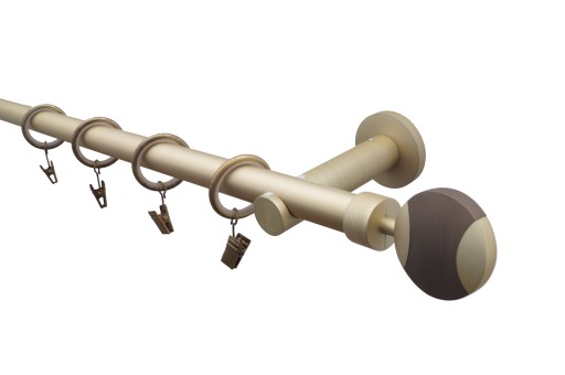 Kompletny karnisz metalowy z elektrolityczną powłoką dekoracyjną o średnicy drążka 19mm.