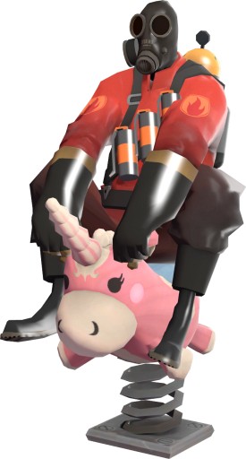 The Balloonibouncer is an action taunt for the Pyro. When activated, the Pyro will bring out and ride a spring-mounted Balloonicorn with some voicelines of amusement. Upon canceling the taunt, the Pyro hops off and the Balloonicorn disappears.