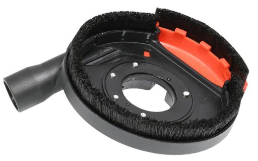 Pasuje do wszystkich małych szlifierek 115 mm - 125 m. Skutecznie odsysa szkodliwy pył, osłona przeciwpyłowa umożliwia odsysanie pyłu podczas szlifowania. Osłone mocujemy w miejsce standardowej osłony metalowej do kołnierza wrzeciona.