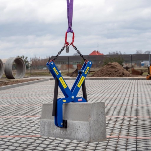 Chwytak CHU służy do przenoszenia i ustawiania krawężników oraz innych elementów betonowych o wadze do 150 kg.