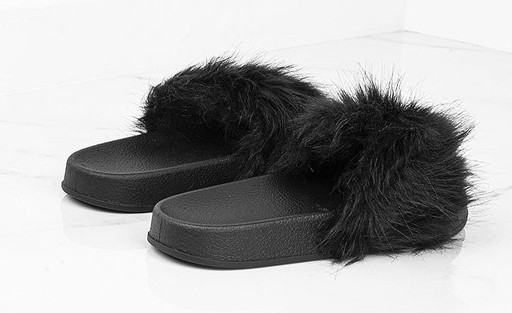 Najmodniejsze klapki z futerkiem. Na gumowej podeszwie, bardzo wygodne i stylowe. Buty sprawdzą się zarówno jako kapcie po domu a także jako element codziennych stylizacji.