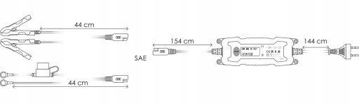 Jedną z najważniejszych zalet wyróżniających naszą ładowarkę od konkurencyjnych jest zastosowanie złącza SAE, do którego można podpiąć w zależności od potrzeby terminale oczkowe lub krokodylki (jedne i drugie znajdują się w zestawie).