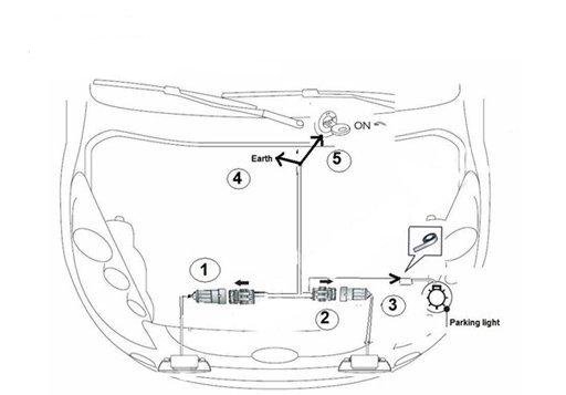 - czerwony + należy podłączyć do kabla, może być od alteratora lub gniazdo z komory bezpieczników, który po przekręceniu kluczyka w stacyjce otrzymuje prąd,