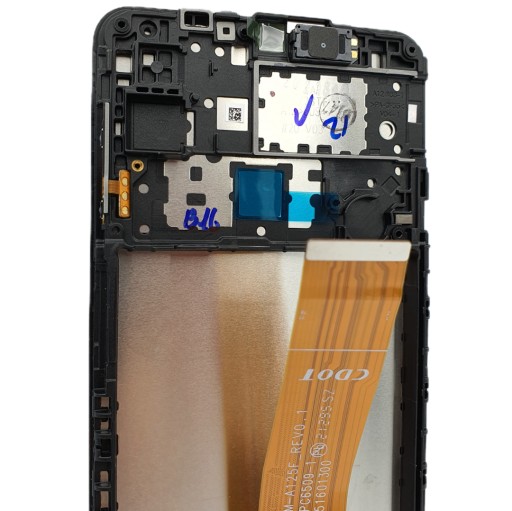 UWAGA !!! Sprawdź wersję telefonu przed zamówieniem. Po lewej stronie A125F (taśma pomarańczowa), po prawej A127F (taśma czarna). Mimo, że wyglądają identycznie to nie można stosować zamiennie - ekran nie będzie działał.