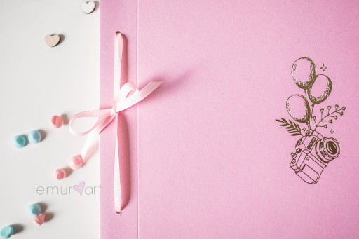 Album charakteryzuje się okładką w różowym kolorze oraz grubymi kartami w kolorze białym, związanymi ze sobą elegancką wstążką.
