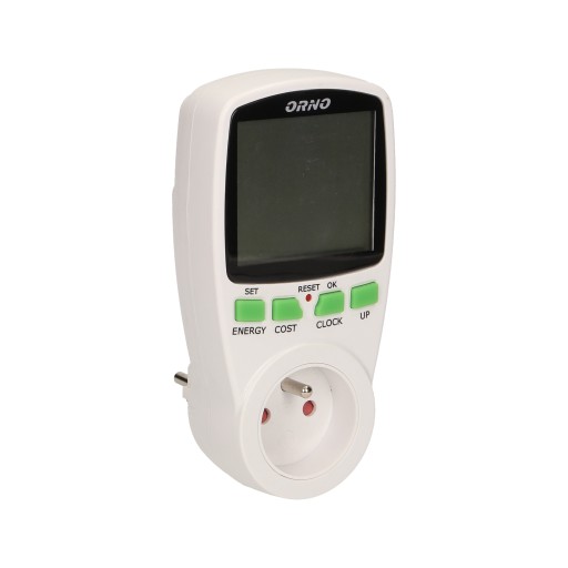 Dwutaryfowy watomierz, kalkulator energii z wyświetlaczem LCD, 2 oddzielne taryfy, wewnętrzny akumulator Orno EM-1