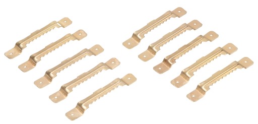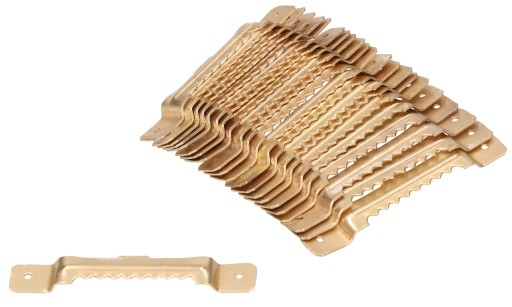 - Zawieszka została wykonana z mocno utwardzonej stali, którą pokryto kolejno ocynkiem i mosiądzowanym kolorem.