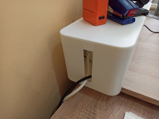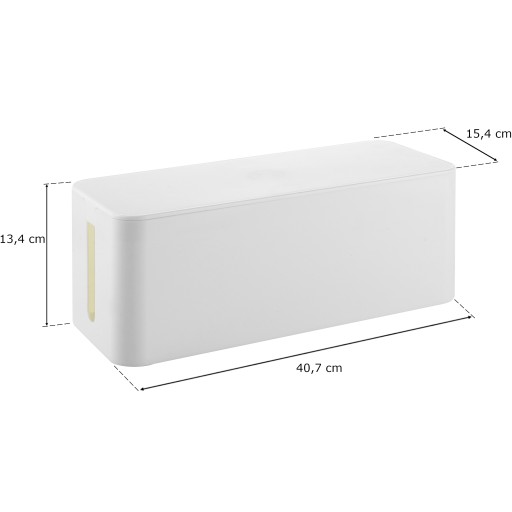 Pojemnik umożliwia uporządkowanie i ukrycie kabli znajdujących się obok lub z tyłu telewizora, przy komputerze oraz na biurku. Chroni je przed kurzem, wilgocią czy uszkodzeniami mechanicznymi. Poprawia również estetykę pomieszczeń w domu, ułatwia sprzątanie oraz odkurzanie. Wielkość pudełka mieści dostępne listwy zasilające.