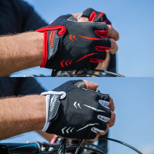Rękawiczki bez palców oraz otwory z siatki zapewniają odpowiednią wentylację, co sprawia, że są doskonałym wyborem na letnie wyprawy rowerowe.