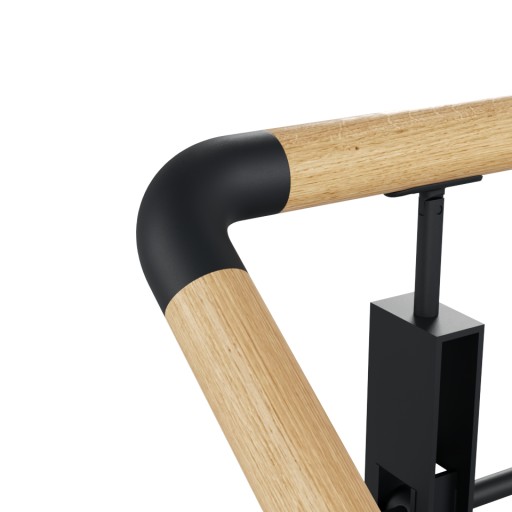 Oferowana balustrada idealnie pasuje do nowoczesnych wnętrz w różnych stylach. Połączenie drewna z metalowym czarnym okuciem okuciem stanowi bardzo modne i efektowne połączenie.