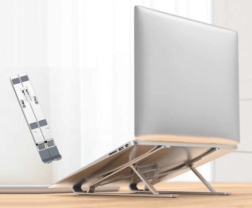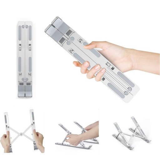 podkładka antypoślizgowa może zamocować komputer przenośny we właściwej pozycji i chronić urządzenie / powierzchnię biurka po umieszczeniu. Stojak na laptopa jest wykonany z lekkiego, wytrzymałego aluminium, co zmniejsza wagę podstawki i zwiększa nośność.