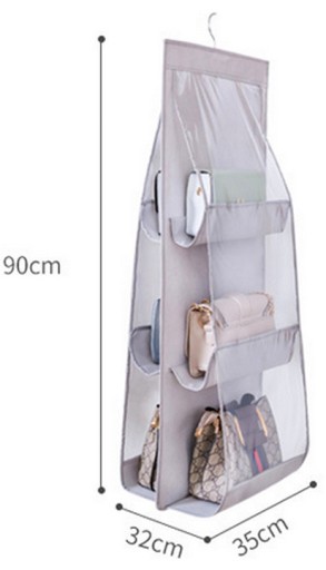 Dwustronny organizer na torebki to idealne rozwiązanie dla osób ceniących sobie porządek w swojej szafie. Zawiera aż 6 przegród, które zmieszczą nawet największe torebki. Organizer na torebki może pomieścić także buty, saszetki, zabawki, ręczniki itp. Możesz użyć go dosłownie na wszystkim. Posiada wieszak, dzięki któremu możesz powiesić organizer np. w swojej szafie.