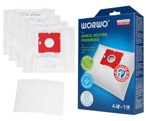 Worki syntetyczne Worwo MPMB02K do odkurzacza | 4szt + mikrofiltr