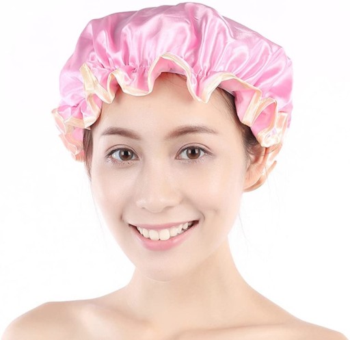 Wodoodporny czepek JV Body Sisters o średnicy 28cm wykonany z satynowej tkaniny z wszytą gumą oraz wewnętrznej wodoodpornej warstwy