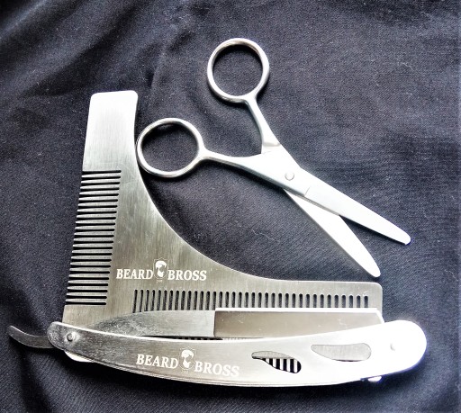 Wzornik wykonany ze stali szczotkowanej posłuży do wyregulowania idealnej linii zarostu. Grzebienie zaś rozczeszą każdą splątaną brodę.