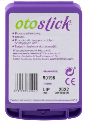 Przedmiotem sprzedaży jest jedno opakowanie OtoStick, innowacyjnego wynalazku Hiszpańskich naukowców bezpośrednio i natychmiastowo redukujący odstające uszy. W skład opakowania wchodzi 8 pojedynczych korektorów. Produkt niwelujący odstawanie uszu nie zmieniający przy tym ich naturalnego kształtu.