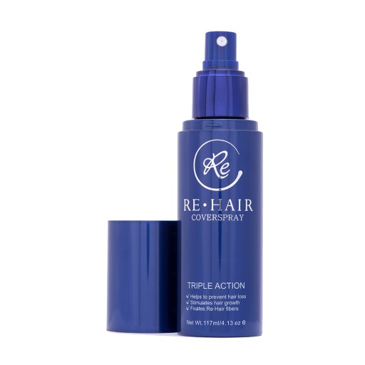 Uzupełnij fryzurę za pomocą Rehair Coverspray; spray w puszce, który zabezpiecza włókna we włosach i chroni je przed deszczem, wiatrem i potem.