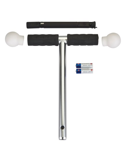 Kierownica posiada metaliczny, anodowany drążek z naniesionym napisem "micro" na jego powierzchnię dzięki temu nikt nie pomyli oryginalnej hulajnogi Micro z tanimi imitacjami.