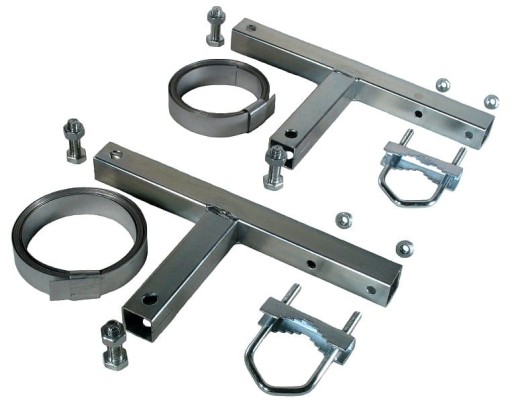 Uchwyt kominowy taśmowy umożliwia zamocowanie masztu do komina za pomocą stalowych taśm. Opasanie komina taśmami daje solidne mocowanie masztu oraz nie wymaga wiercenie otworów w kominie.