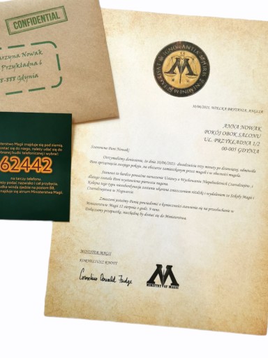 Twój osobisty list z Ministerstwa Magii - prosto od Korneliusza Knott'a !