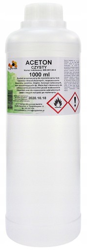 Aceton wysokiej jakości i czystości. Ten aceton może być stosowany również w branży kosmetycznej do usuwania tipsów, ozdób na paznokciach, mas akrylowych i żelowych oraz warstwy lakieru hybrydowego.
