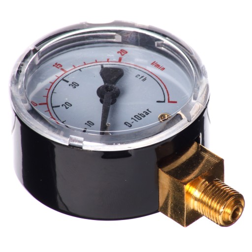 Manometr zegarowy do reduktorów butlowych spawalniczych. Manometr działa na zasadzie sprężystego odkształcenia sprężyny rurkowej Bourdona pod wpływem zmiany zadanego ciśnienia.