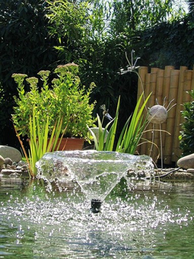 Wszechstronna pompa fontannowa PondoVario wprowadza ruch do stawów ogrodowych. Jej wydajność to 720 l/h, bardzo niski pobór mocy - tylko 9 watów. Pompa wyposażona jest w przedłużenie teleskopowe oraz cztery nasadki fontannowe (kielich, wulkan, dzwon, zwykły). Drobne szczeliny filtra siatki zapobiegają zapychaniu się grubszymi cząstkami, a zintegrowana ochrona termiczna zapobiega przegrzaniu.