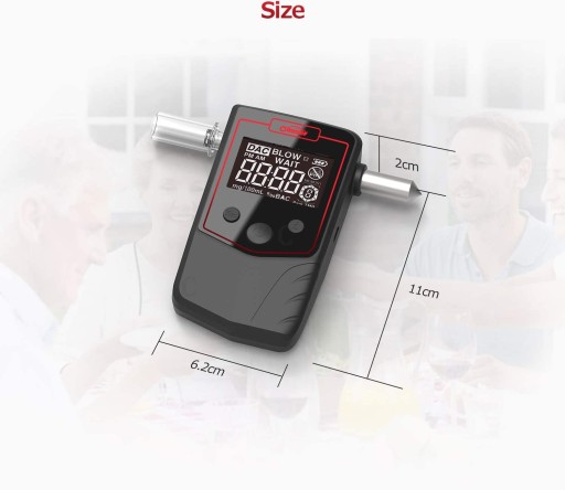 Akumulator litowo-jonowy: wbudowana bateria litowa 350 mAh, możesz użyć wyposażonego w kabel danych micro USB do ładowania testera oddechu, moc wejściowa wynosi 5 V-2.1A, którą można ładować za pomocą ogólnej ładowarki do telefonu komórkowego lub komputerowy interfejs USB Funkcja alarmu. Gdy wartość testowa zawartości napoju jest wyższa niż 0,05% BAC, lampka ostrzegawcza zapala się i emituje ciągłe brzęczenie, ostrzegając kierowcę. Wyświetlanie zegara i funkcja odczytu pamięci: Urządzenie może być używane do wyświetlania aktualnego czasu, gdy jest w trybie gotowości. Funkcja pamięci wyników testu, możesz przechowywać 10 ostatnich wyników testu, abyś mógł zobaczyć porównanie. 4 jednostki miary Łatwy do zabrania w dowolne miejsce: alkomat ma niewielkie rozmiary (4,72"2,56"0,94"), co pozwala na przenoszenie go w dowolnym miejscu i czasie. Przyjdź z 4 ustnikami do wymiany i wybijakiem 2 w 1-1