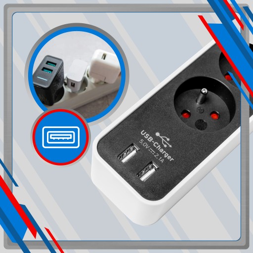 Listwa zasilająca Ecolor została wyposażona nie tylko w 4 gniazda, ale także w 2 zintegrowane porty USB o podwyższonej ochronie styków. Dzięki temu zasilacz pozwala na błyskawiczne ładowanie urządzeń posiadających wtyk USB typu A.