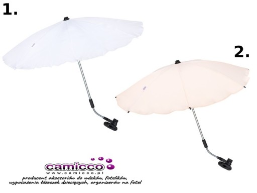 Parasolkę można wypiąć z wózka bez konieczności demontażu uchwytu. Dwa punkty regulacji pochylenia parasolki na stelażu ( sprężyny ) dają możliwość dowolnego nachylenia parasolki i ochrony dziecka przed promieniami słonecznymi, nawet gdy słońce jest bardzo nisko. Uchwytem od parasolki regulujemy po środku sprężyny, a nie na jej końcach - regulujemy wygięciem w literkę "C" - nie pod kątem 90 stopni, ponieważ spowoduje to jego złamanie