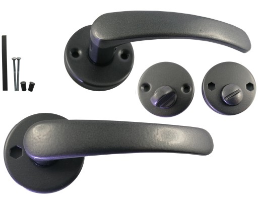 KLAMKA DRZWIOWA BISZKOPT z okrągłym szyldem + DOLNA ROZETA WC