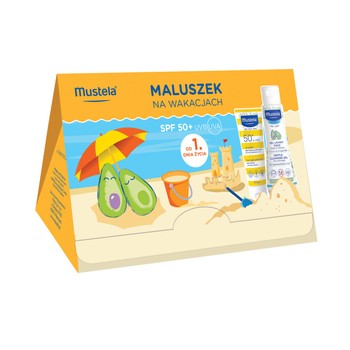 Zestaw Mustela Maluszek Na Wakacjach, mleczko przeciwsłoneczne, SPF 50+, 40 ml + żel do mycia, 100 ml