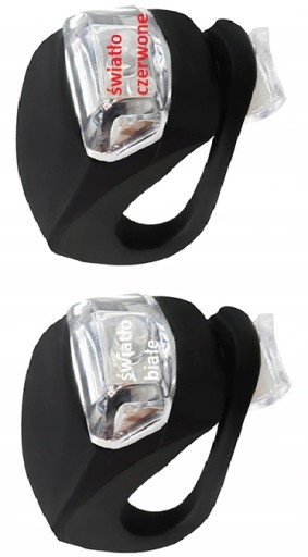 - 2 silikonowe lampki rowerowe wyposażone w po dwie jasne diody led( białe-przód i czerwone-tył )