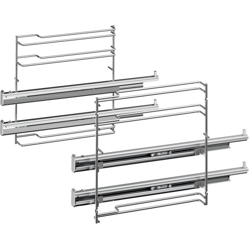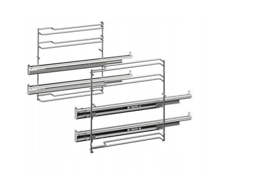 Prowadnice teleskopowe 2 poziomowe. Zapewniające komfort i bezpieczeństwo wyciągania potraw z piekarnika.