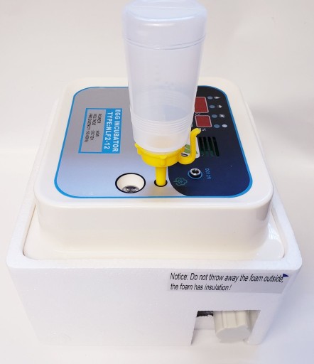 Inkubator 230V/12V wyposażony w awaryjny system zasilania 12V z możliwością przełączenia do akumulatora w przypadku braku energii elektrycznej z sieci 230V bez przerwy w prace inkubatora.