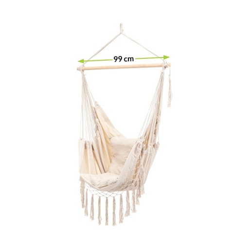 Dodatkowo fotel wiszący ma miękkie poduszki, dzięki którym relaks jest jeszcze przyjemniejszy.