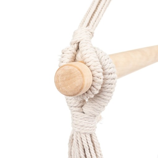 Wiszący fotel posiada solidne liny, które zapewniają mu wytrzymałość.