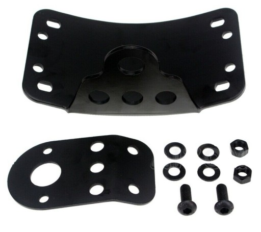 Uniwersaln y zestaw pozwala zamocować tablicę rejestracyjna i opcjonalnie (odkręcana część) lampę z boku motocykla do ośki tylnego koła.