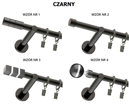 Karnisze dostępne są w kolorze czarnym lub czarnym macie.