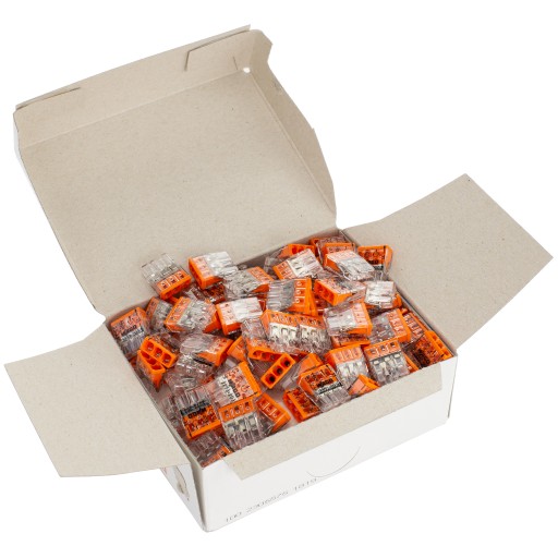złączka COMPACT do puszek instalacyjnych; do przewodów jednodrutowych; maks. 2,5 mm²; 3-przewodowe; kolor obudowy przezroczysty; kolor pokrywy pomarańczowy; temperatura otoczenia maks. 60 °C (T60); 2,50 mm²; transparentny