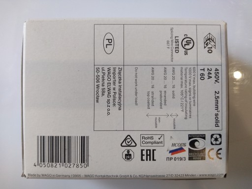 - Zakres przekroju przewodów: 0,5 ... 2,5 mm²