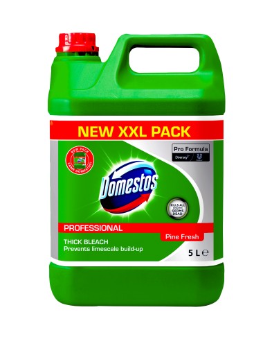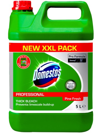 Nowy bardziej gęsty Domestos ma udowodnioną moc - przylega do powierzchni toalety, aby nawet po spłukaniu zabijać bakterie.