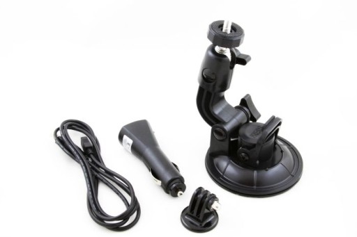 4. Kabla USB - mini USB o długości 124 cm, pozwalającego na ładowanie kamery nie tylko z zapalniczki samochodowej, lecz również z komputera oraz na transfer danych między komputerem a kamerą.