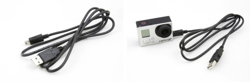 Kabel pozwala na podłączenie kamer do ładowarki samochodowej lub komputera / laptopa / tabletu w celu zasilania, ładowania urządzenia lub w celu przesyłania danych z komputera do kamery lub z kamery do komputera.