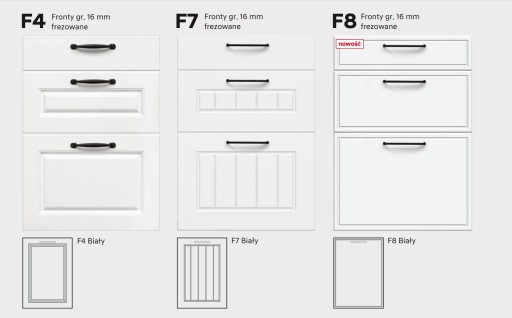 Kolekcja tej kuchni słynie z gustownych wersji kolorystycznych, prostego montażu oraz szerokiego wyboru opcjonalnych akcesoriów pozwalających dostosować zestaw kuchenny do własnych potrzeb i preferencji.