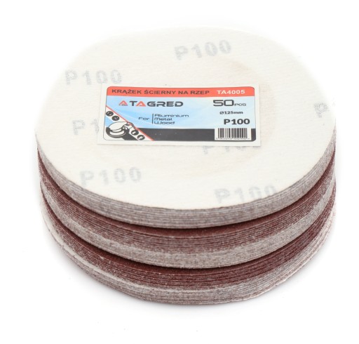 Krążki samoprzylepne 125mm, papier ścierny gr. 100, 100 sztuk