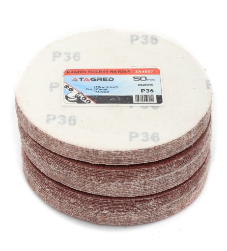 Krążki samoprzylepne 125mm, papier ścierny gr. 36, 100 sztuk
