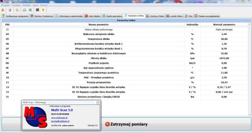 3. Podgląd parametrów w czasie rzeczywistym np. temperatura silnika, czas wtrysku, wypadanie zapłonów itp.