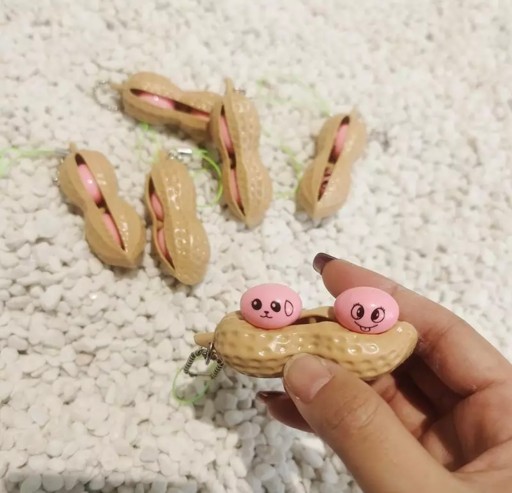 Breloczek orzeszek to ciekawa zabawka sensoryczna zarówno dla dzieci jak i dla dorosłych. Strączek wykonany jest z rozciągliwej, elastycznej masy. Zabawa polega na wkładaniu i wyciskaniu fasolek ze strączka poprzez rozciąganie go. Fasolki również wykonane są z masy umożliwiającej ich swobodne rozciąganie.