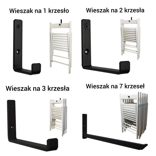 Wieszaki robimy z płaskownika 20x5 mm wymiary wieszaka wysokość 10 cm i długość wewnętrzna 22 cm, przystosowany na 4 krzesła, możemy zrobić wieszaki na 1, 2, 3 krzesła (dostępne są na innych aukcjach)